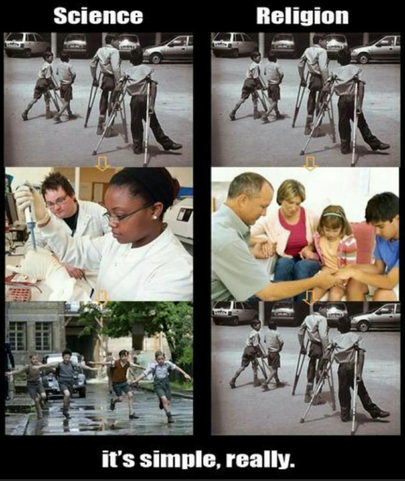 I grew up in the 90s and in Mexico and I was taught the same thing. I still didn’t end up religious but that’s because my family always pushed for critical thinking and was pro science. Tbf they also grew up in an age and area where they saw older family legit die of shit that was preventable with medicine that might not have existed yet or was unavailable in their poor town.