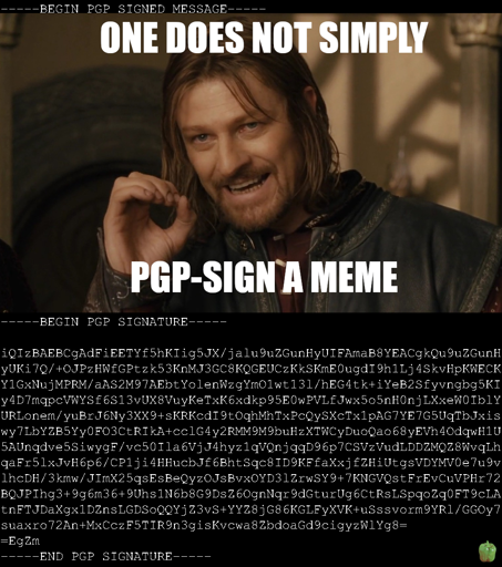arrow-up10arrow-down1image-----BEGIN PGP SIGNED MEME-----lemmy.worldshoki@lemmy.world to linuxmemes@lemmy.world · 1 year agomessage-square5linkfedilink