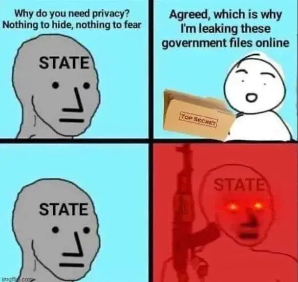 arrow-up136arrow-down1imageu mad, state?lemmy.worldvikingqueef@lemmy.world to Privacy@lemmy.ml · 2 years agomessage-square27linkfedilink