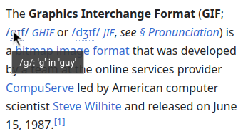 Aatube@lemmy.dbzer0.com to You Should Know@lemmy.worldEnglish · 23 days agoYSK When you hover over a piece of the phonetic notation on (English) Wikipedia, it shows you an example for its pronunciationsh.itjust.worksimagemessage-square62linkfedilinkarrow-up1408arrow-down112file-textcross-posted to: til@lemmy.world