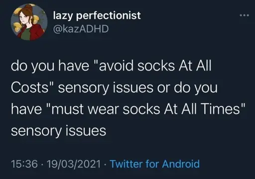 Missing “the always wears shoes because they dont like the feel of the floor and socks aren’t enough” option