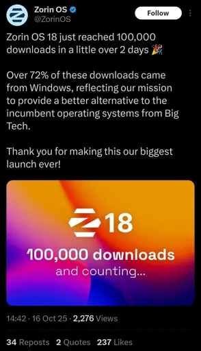 minus-squareStrongHorseWeakNeigh@piefed.sociallinkfedilinkEnglisharrow-up19·2 months agoI actually just switched to Zorin as my daily driver this past summer. Good riddance Windows