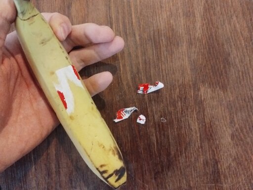 If it’s hard to remove, just eat it along with the peel that is covered by the sticker.