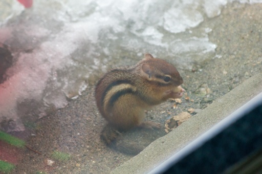 Little fella remembered me feeding him in that same spot all summer, so I gave him a peanut. Then about 30 more peanuts. He/she was hungry.