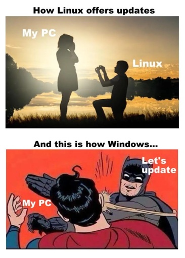 There’s one more big difference between Windows and Linux: Windows can only install updates while shutting down, for some reason. On Linux I boot the machine, see the notification for updates, and run them in the background while I do my own things. If the updates need a reboot to take effect, it’s a normal reboot that takes mere seconds.