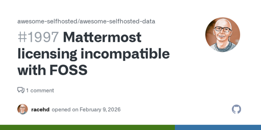 No it’s not? The issue is on Awesome Self-hosted, where they had Mattermost listed in FOSS instead of non-free.