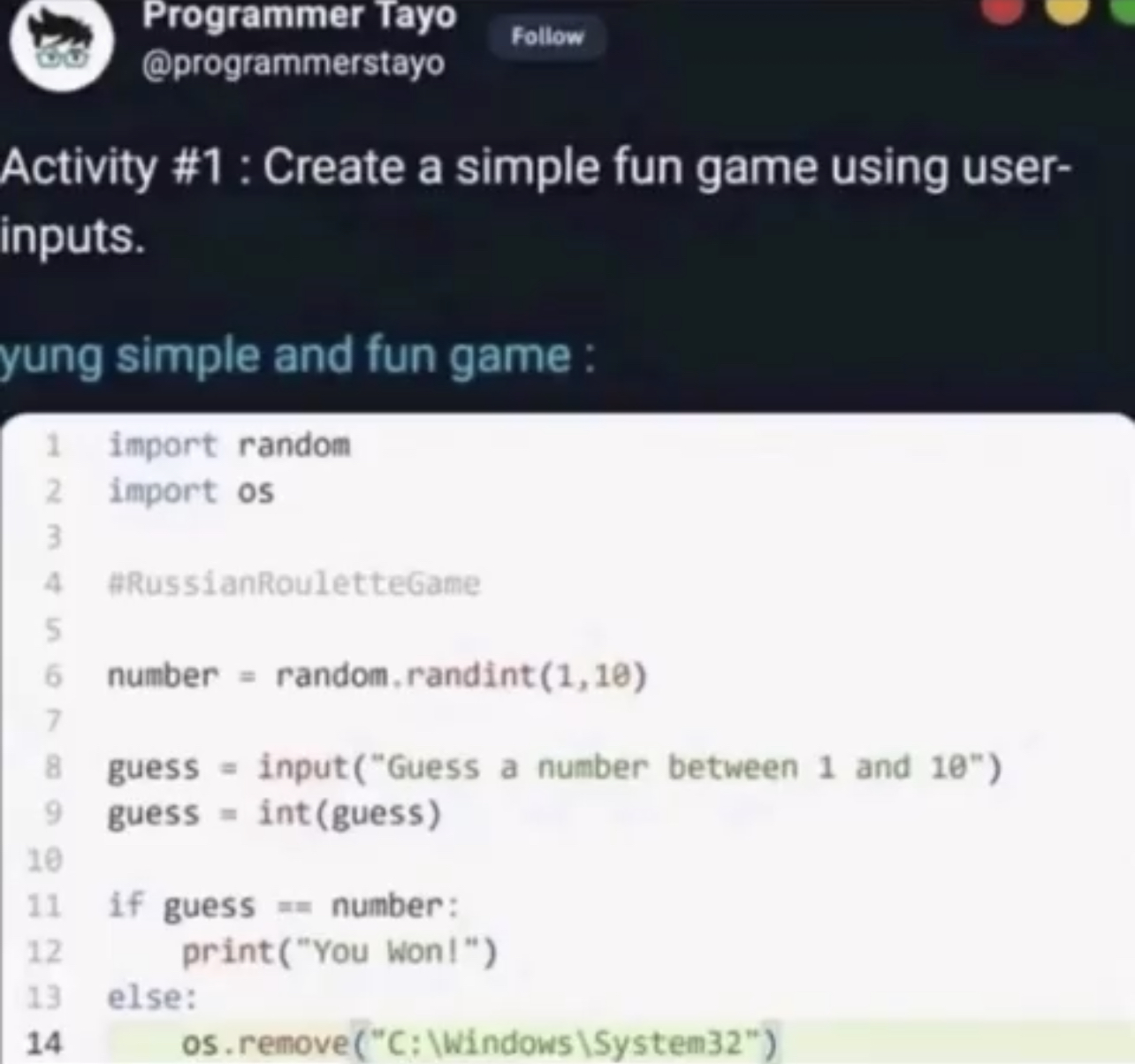 arrow-up17arrow-down1imageA fun simple game i.imgur.comGollum@feddit.de to Programmer Humor@programming.dev · 2 years agomessage-square7linkfedilink