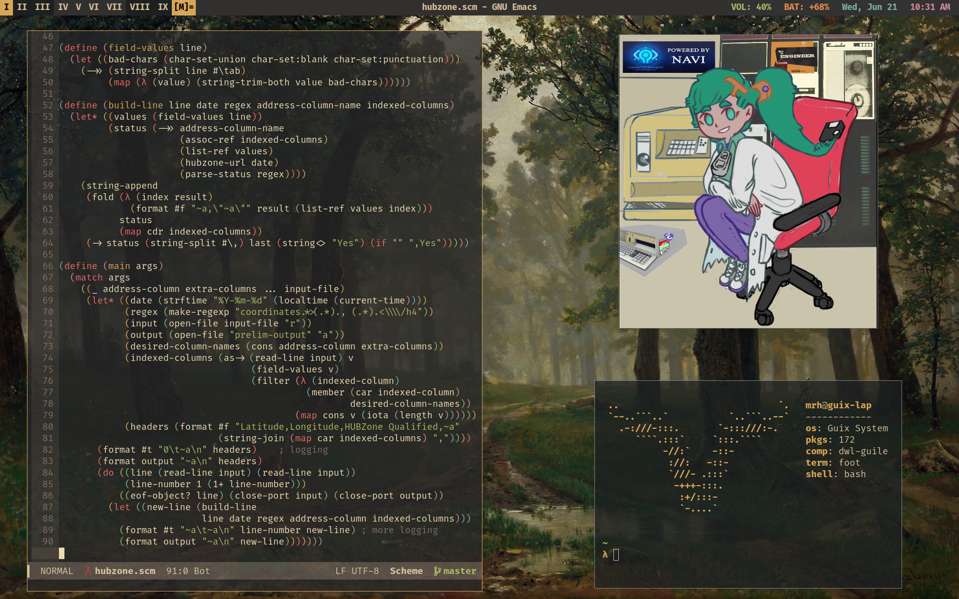 Being able to hack on it in a lisp (scheme) is the cherry on top, along with the great emacs integration. I would highly recommend it to any lisp/emacs/gnu enthusiasts.